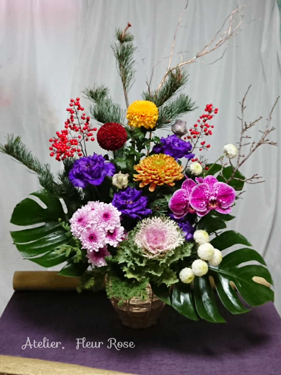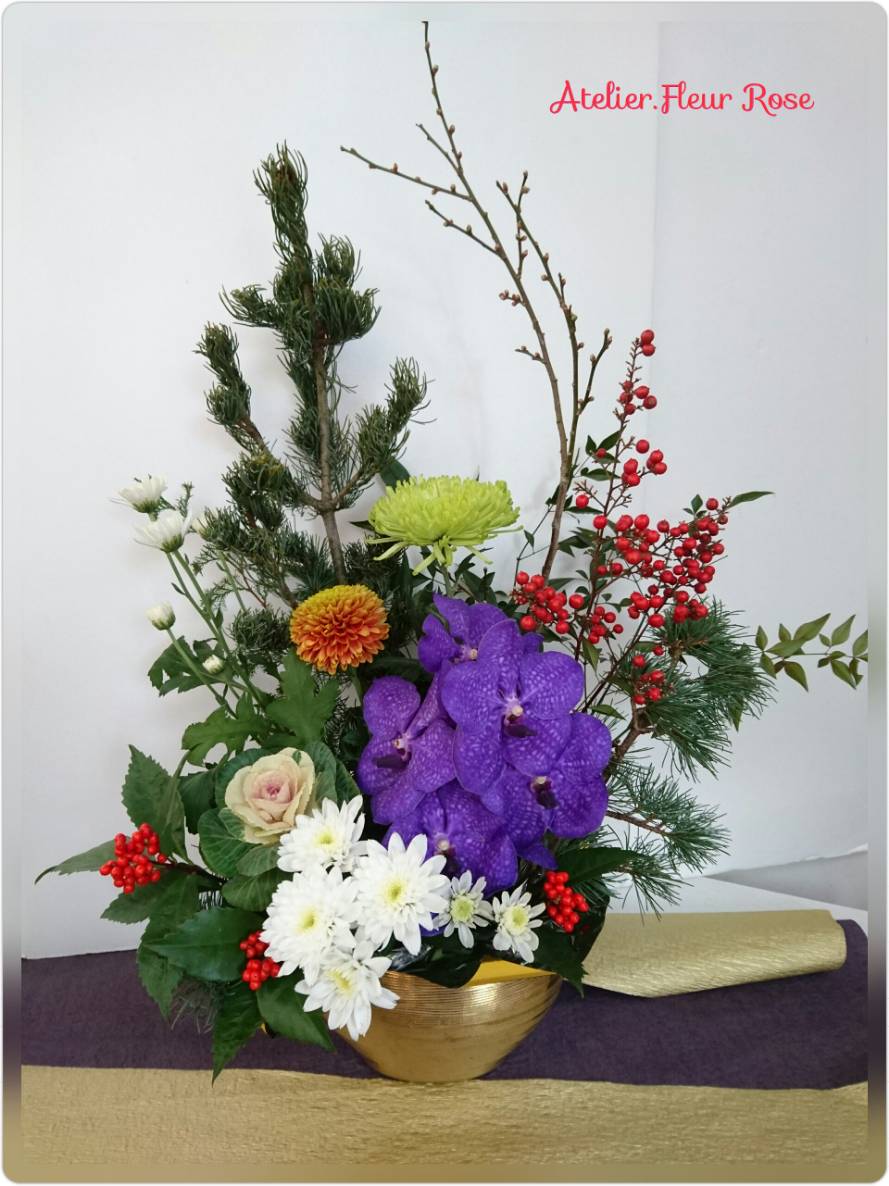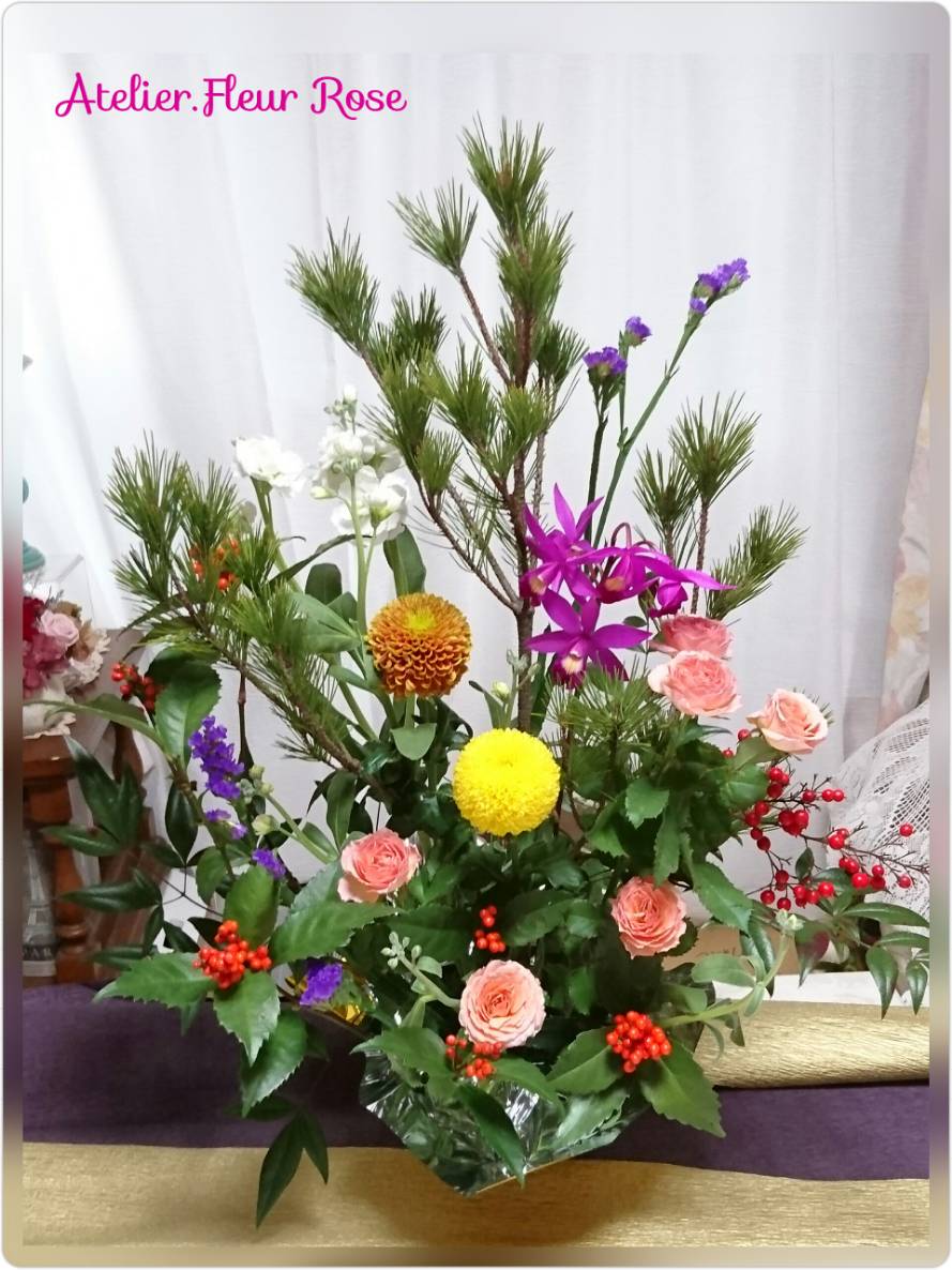 毎年好評のロゼお正月レッスン。縁起の良いよい素敵なお花でお正月をお迎えしましょう!